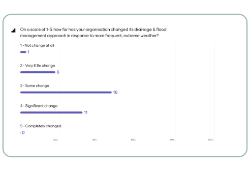 Delegates were then asked how far their organisations have changed their drainage and flood risk approach in response to more frequent extreme weather. Most reported some or significant change, suggesting that lessons are being absorbed. However, no authority felt their approach had been completely transformed.